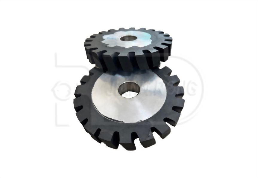 砂帶機台上安裝砂帶的輪子,可將砂帶套上進行拋研,不同的金屬工件適用不同的軟硬度